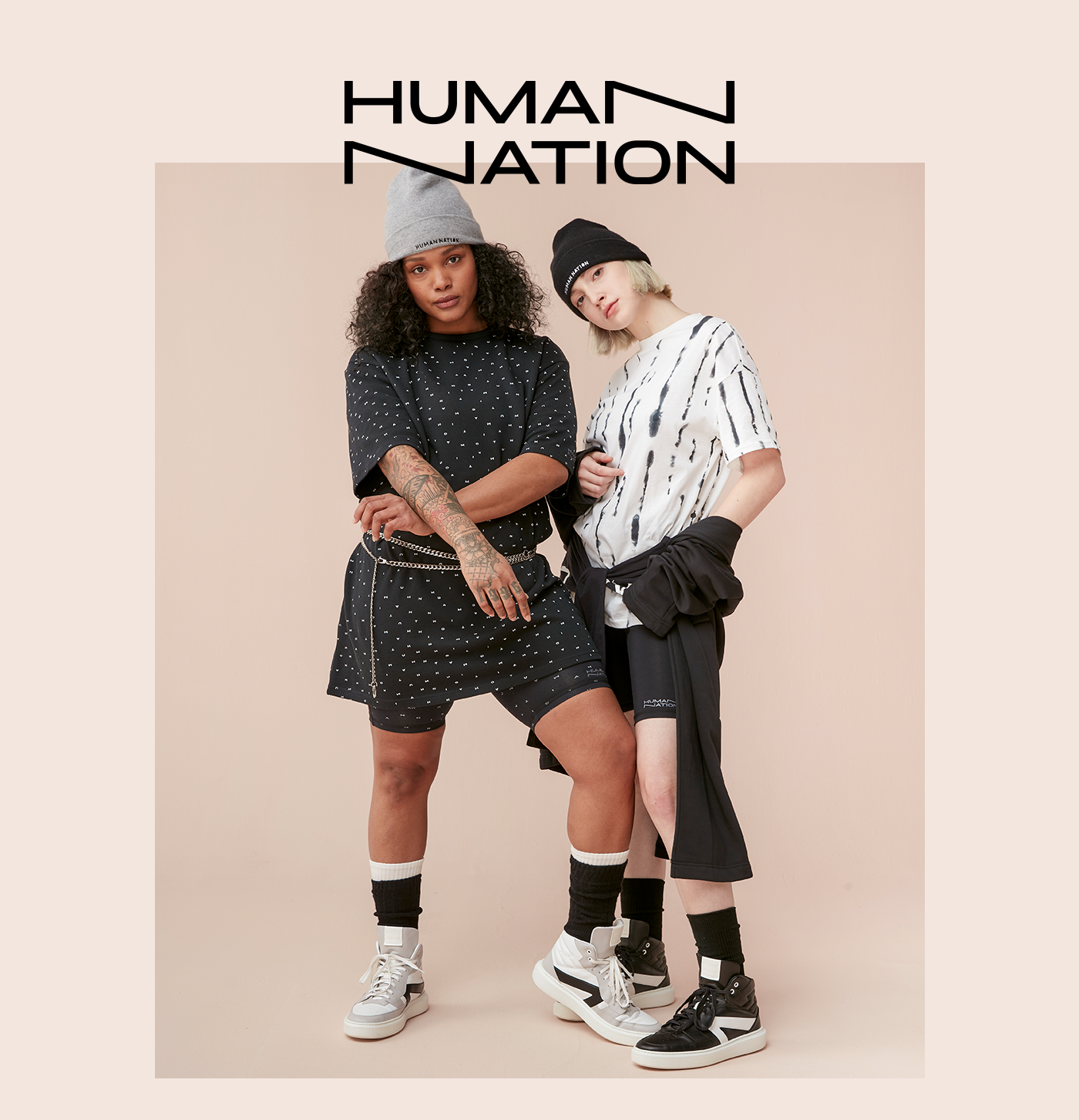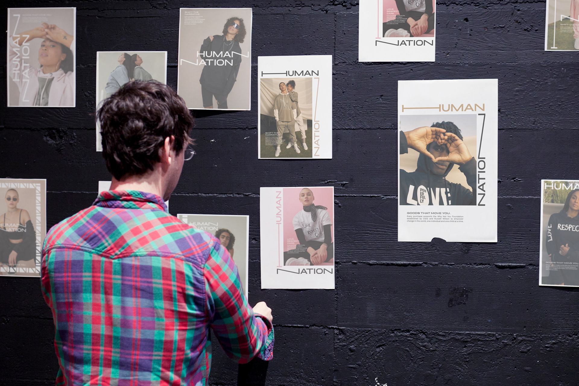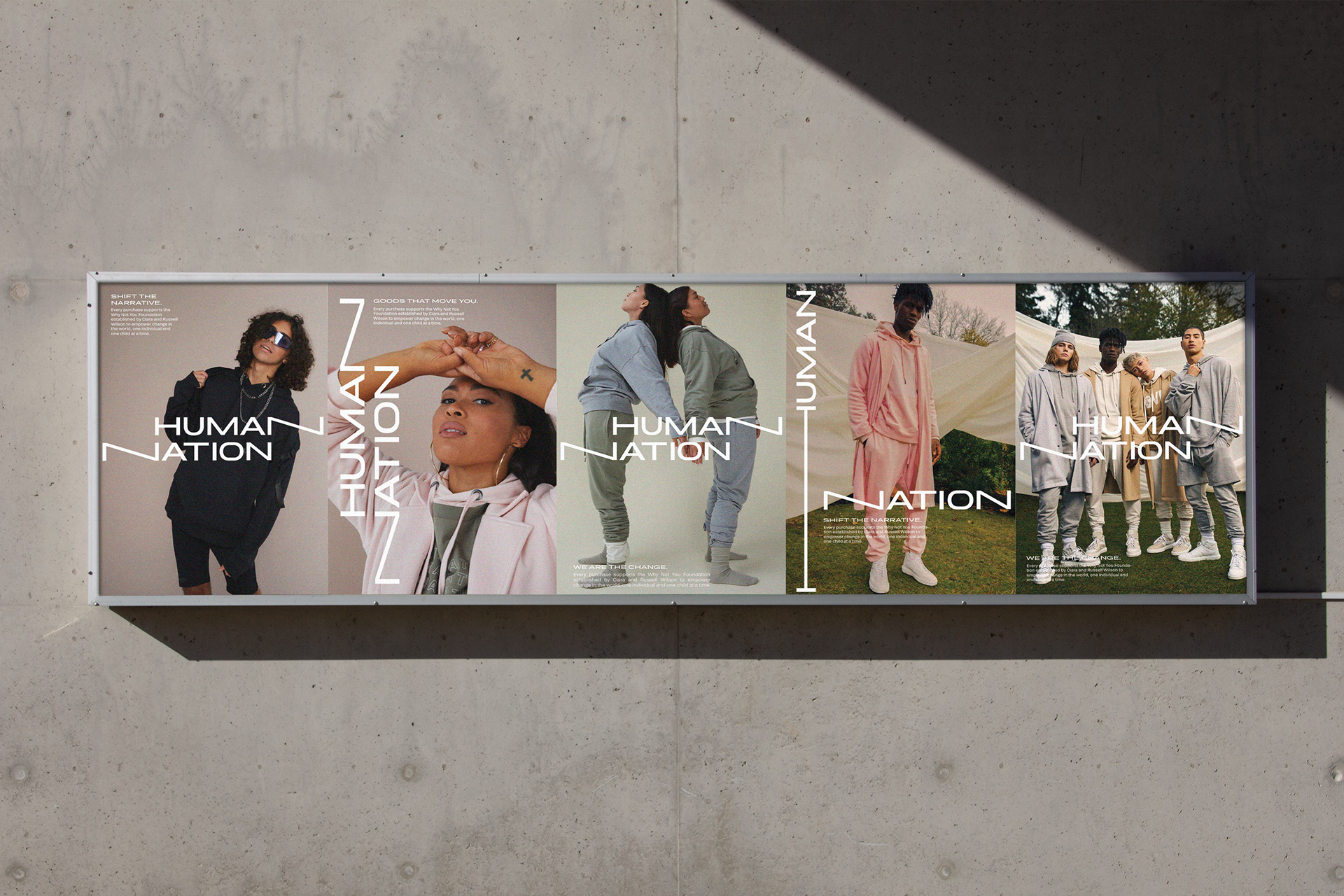 We collaborated with Russell & Ciara Wilson to design a gender neutral apparel brand. Human Nation is part of the House of LR&C. Russell Wilson, Ciara Wilson, and Christine Day (of Lululemon) founded Human Nation as a way to democratize retail and build a co-op of customers, members, and game changers who are moving the world together. HLRC makes versatile products for every body. They are a new concept in retail aiming to to positively impact one billion lives by creating a company formed on radically inclusive product innovation. In the spirit of accessibility, Human Nation will be available at Kohl’s, Nordstrom, Revolve and Amazon. The Human Nation identity was designed to be systematic and flexible. Like our clothing, our wordmark has the ability to stretch, move, and shift without losing recognition and form.