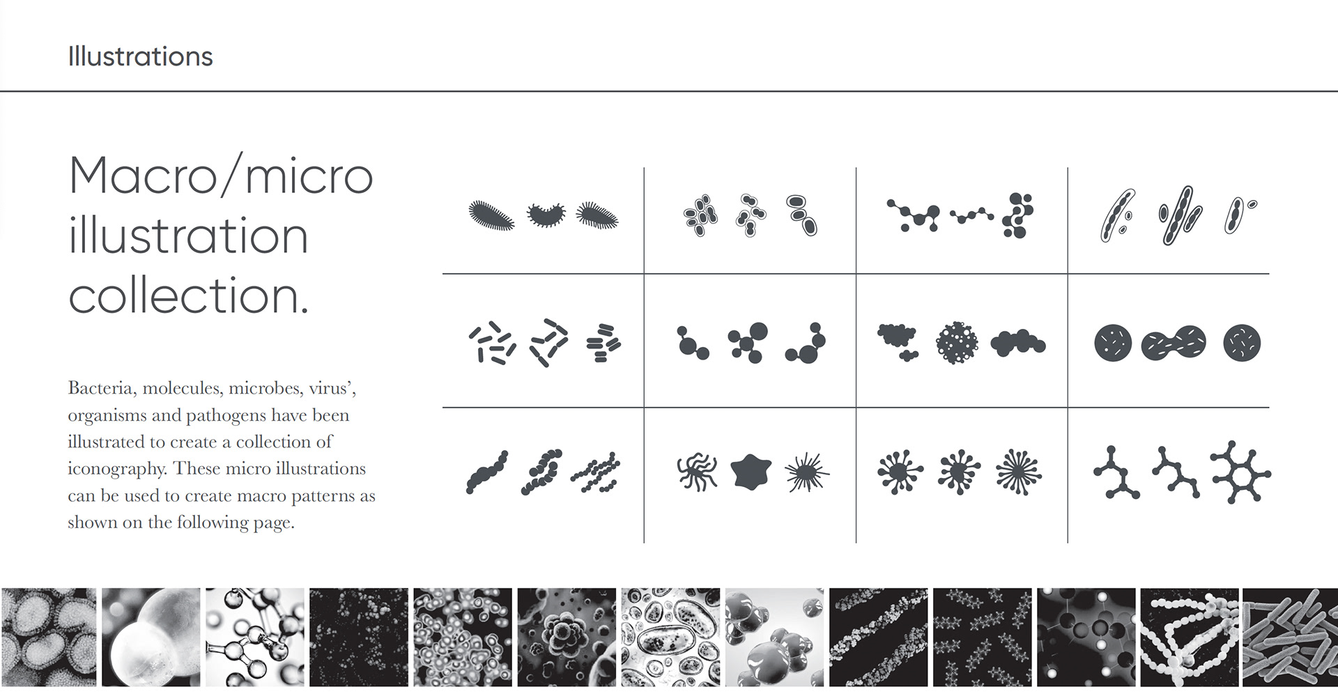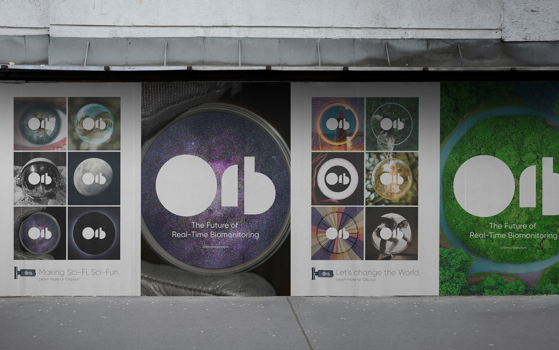 The Orb logo, inspired by Earth and its makeup, uses geometric shapes that are both technical and slightly varied like bacteria. We designed a flexible identity system, featuring photography of places where Orb is used, paired with custom macro-bacteria illustrations and a varied color palette for product backgrounds and super graphics.