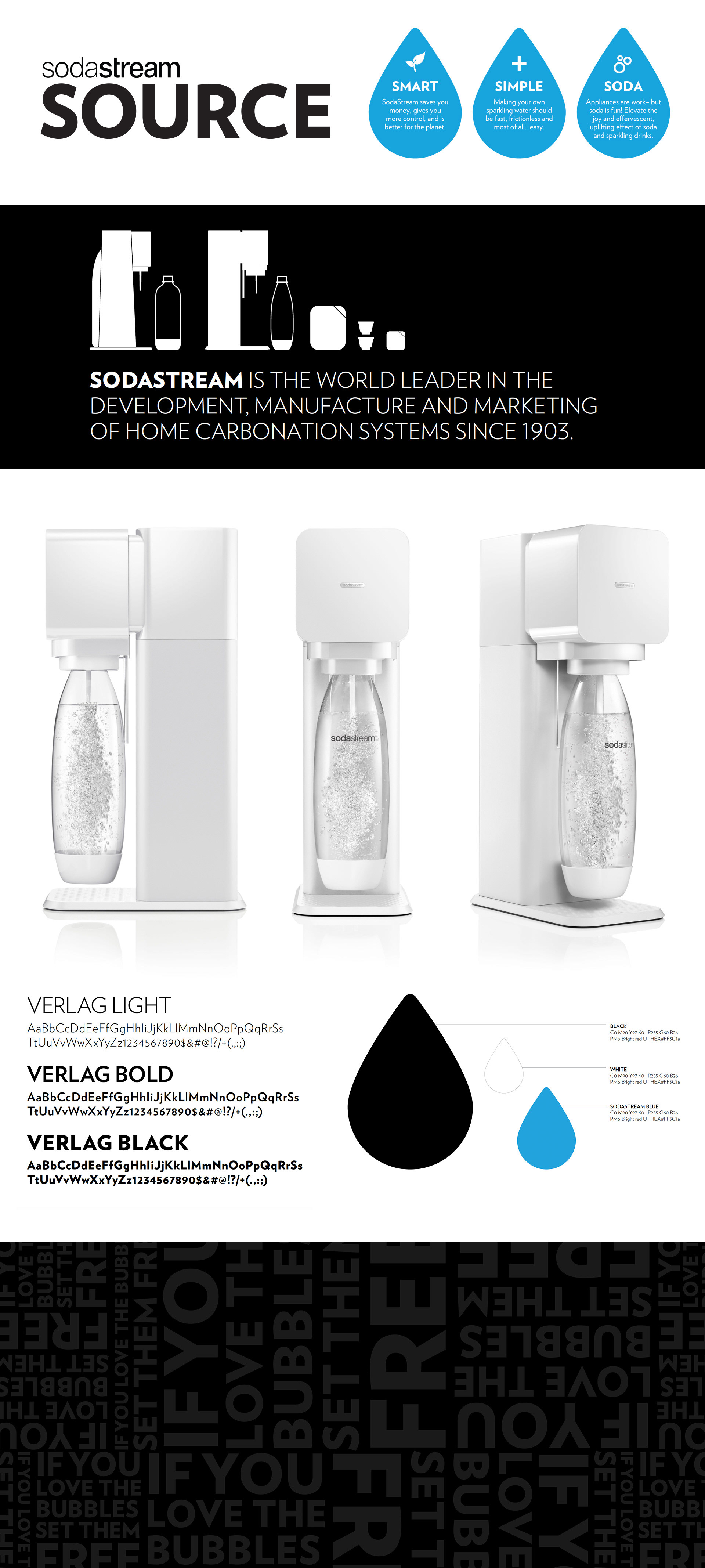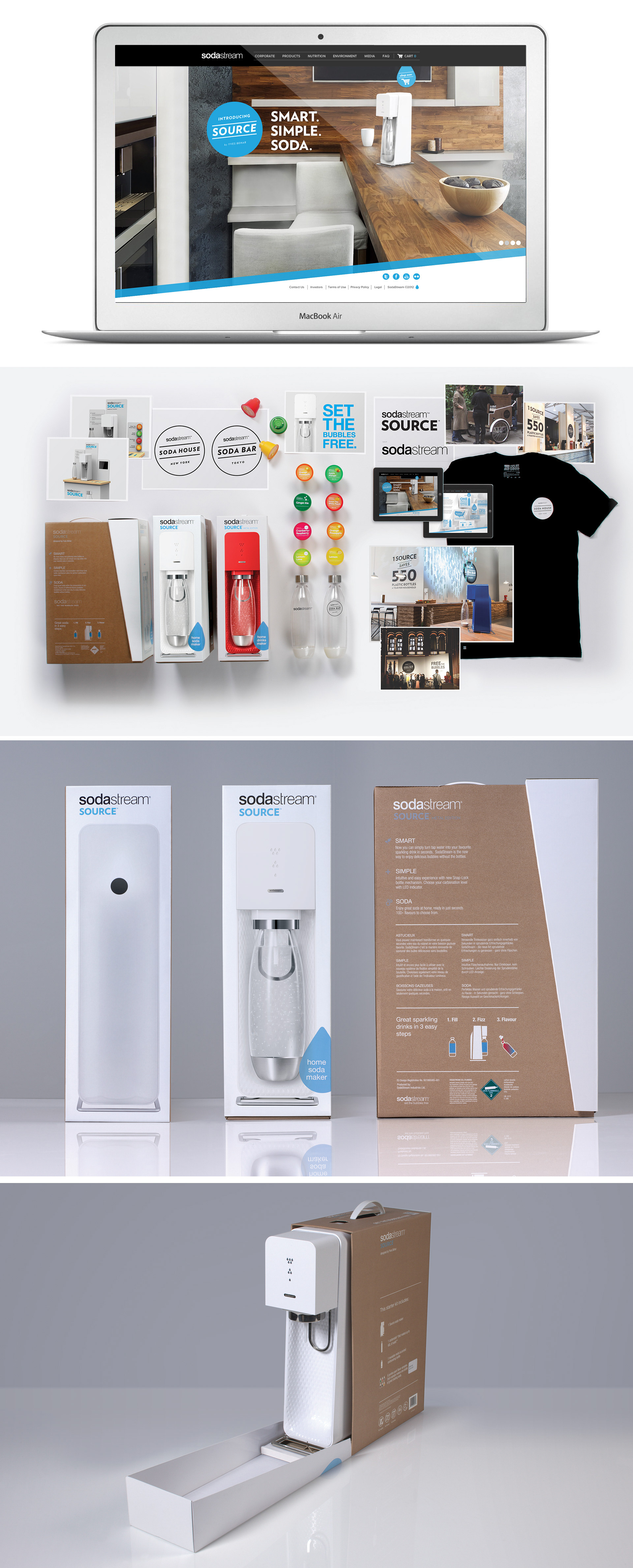 SodaStream makes it easy for anyone to change their sparkling water and soda consumption by not wasting disposable bottles. With SOURCE, we set out on a journey to apply a vision of “reduce and refine” to the entire sparkling water and soda making experience. The bold clean typography and minimal color palette were paired with recycled kraft paper for a sustainable design.